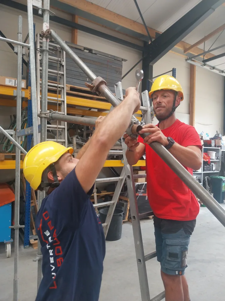 En avril, l’équipe a suivi la formation obligatoire lié aux travaux en hauteur ( portage du harnais). En juin, cette formation a été complété par la qualification de la pose d’un échaffaudage sur pieds avec Artiformation.